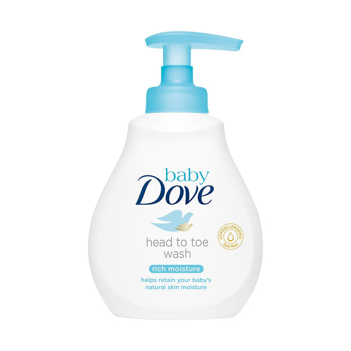 Dove Baby Head To Toe Wash Rich Skin Moisture 200 ml is pH neutral and helps skin retain its natural moisture while gently cleansing. Fragrance free and hypoallergenic, it offers mild care and protection for babies from the first wash.