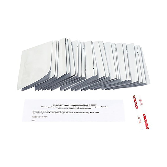 Reliable, fast and easy-to-use U Test Drug Dagga THC Strips (25 strips) for at-home or point-of-care cannabis detection. These THC urine test strips provide a quick dip-and-read screening solution with a standard 50 ng/mL cutoff for detecting delta-9-tetrahydrocannabinol (THC) metabolites. Ideal for workplace screening, clinical triage, rehab monitoring and personal use.